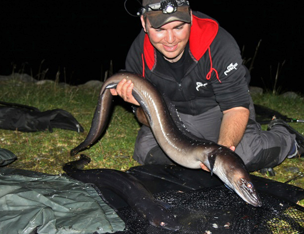 Andreas var ikke mer snau enn at han fikk turens fjerde havål litt seinere, også dette en nokså moderat fisk størrelsesmessig med sine 4 kg. De andre gutta hadde ikke flyten, og mista hver sin sikre ålekontakt. Det var aktivitet jevnt og trutt hele kvelden men dessverre kom det ikke flere opp.