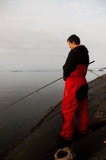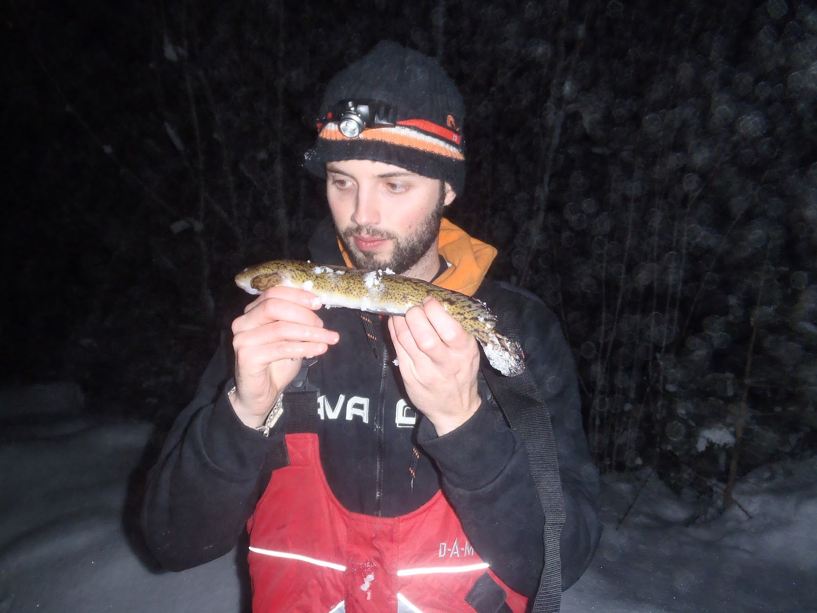 Fisket fortsetter i 15min til, og ny aktivitet hos Vegar. Opp kommer nok en lake, men denne litt mindre. En latterfullt OC sparker litt snø i trynet mitt, og annonserer hans tanker om min avgang fra NKPL, hvis det ikke blir skjerpings. Minuttene går, og tekoppen samt frynsete nerver blir bare tynnere og tynnere…