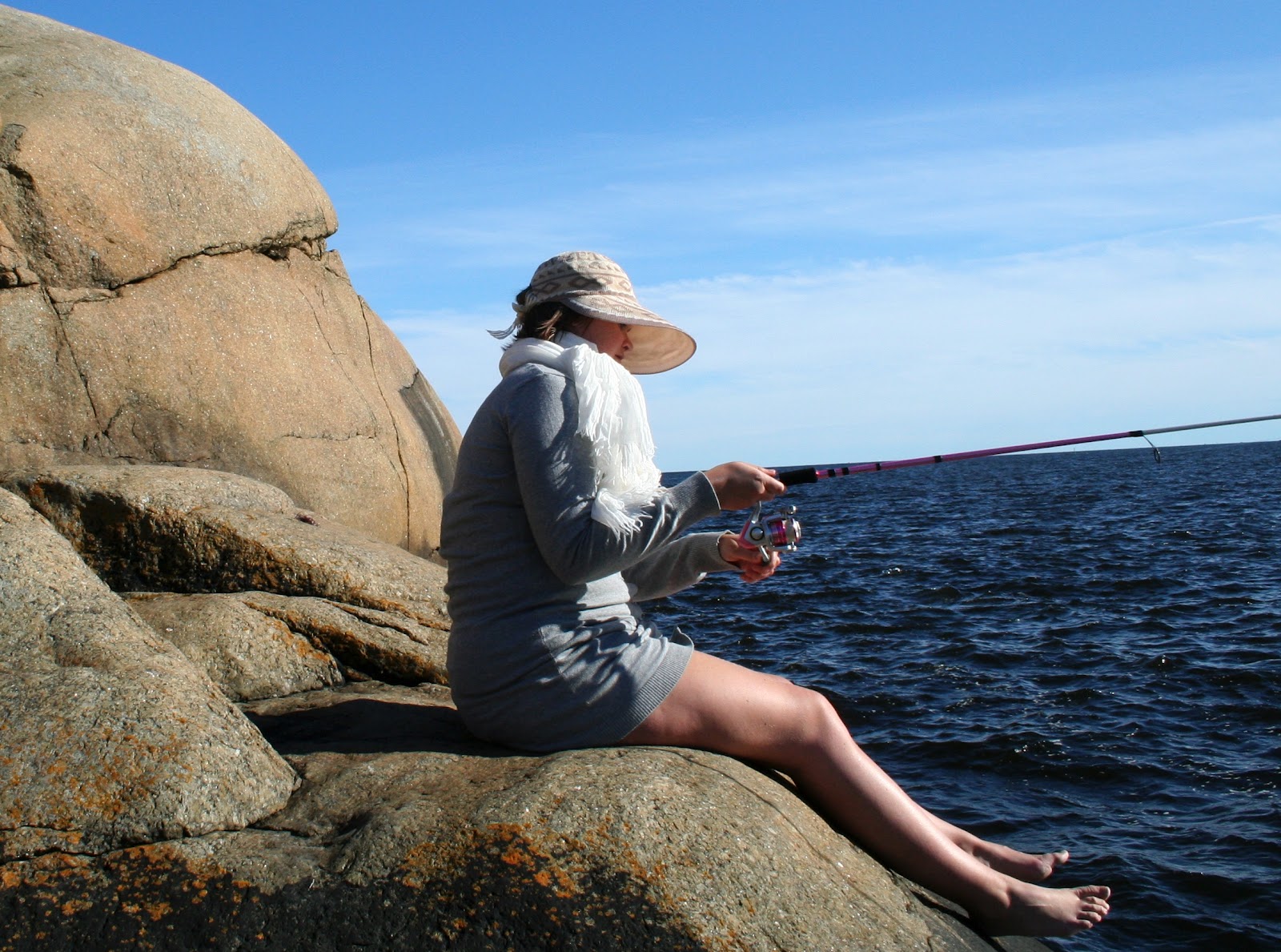 Jeg hadde slått fra meg å fiske fremover siden det er ferie og familietid, men så kom jeg på at Mari har fått ny rosa stang og snelle og at hun faktisk liker å bli med ut på tur. Og sammen med sol, pils og ferske reker blir det hele jo litt mer familievennlig.