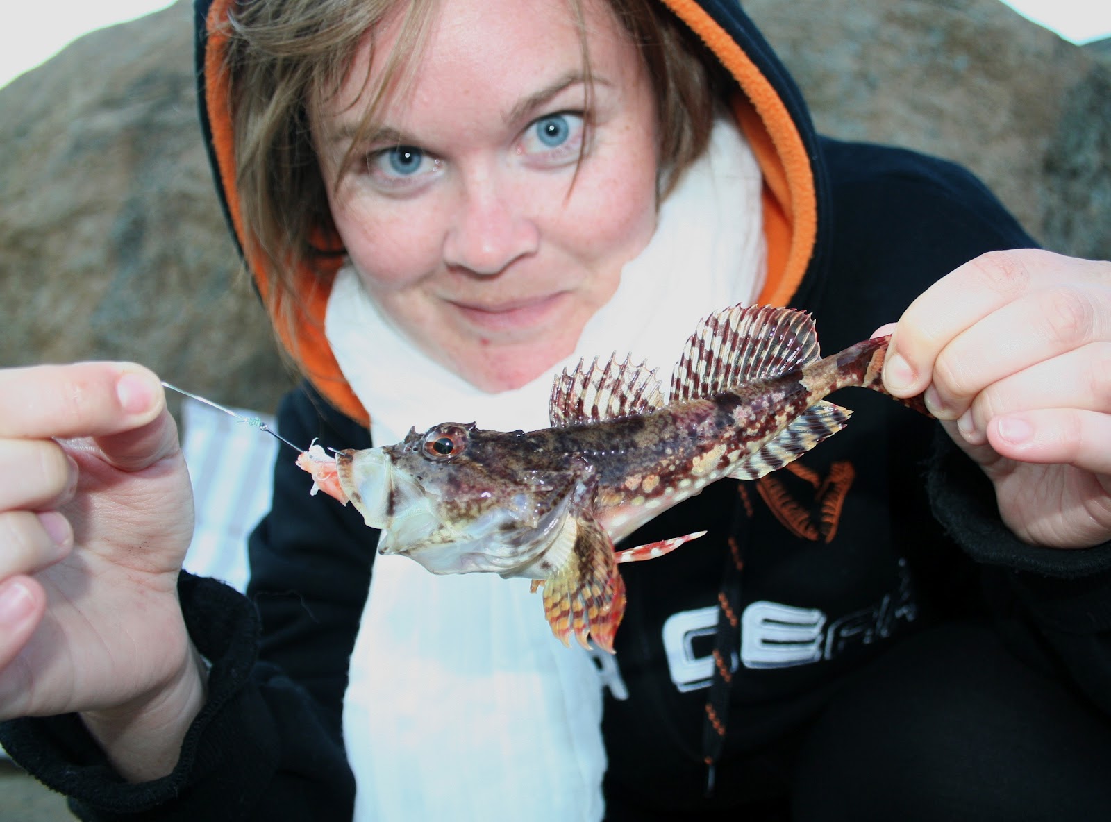 Det vitner om en kul plass når første fisken man får er en fjesing. Vi som er vokst opp kystnært i Vestfold ble tidlig advart mot å bade på sandstrender siden fjesingen ligger nedgravd i sanda og formelig venter på å angripe føttene til uvitende badegjester. Mari er vokst opp i innlandet har aldri hørt om dette, og ble litt småskeptisk når jeg la ut om smerteforløp og dødelighetsprognoser.