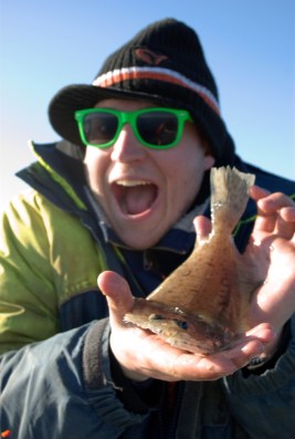 Etter ein snau time utan napp, løsna det endeleg for Sven, og han klura opp ei lomre på 555 gram. Ny art, og den einaste fisken han var fornøgd med på heile turen. Han fekk tårer i augene, hoppa opp og ned, og skreik “Yeah buddyyyyy! HENT KÅBBÅIHATTEN!”.