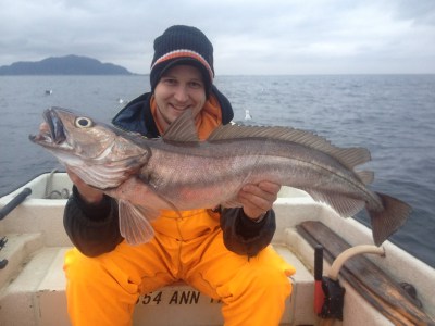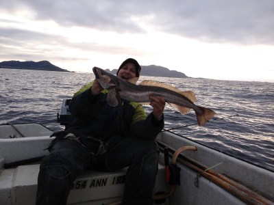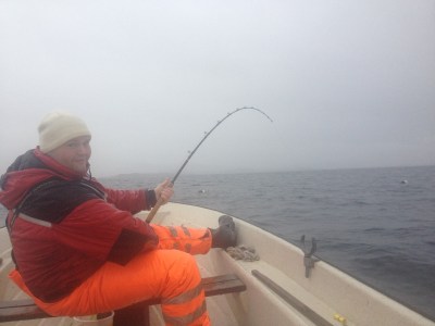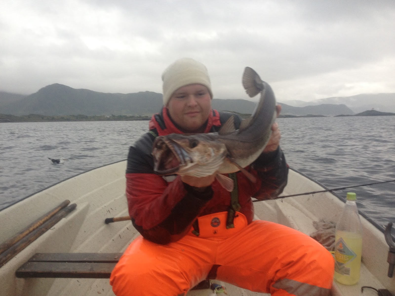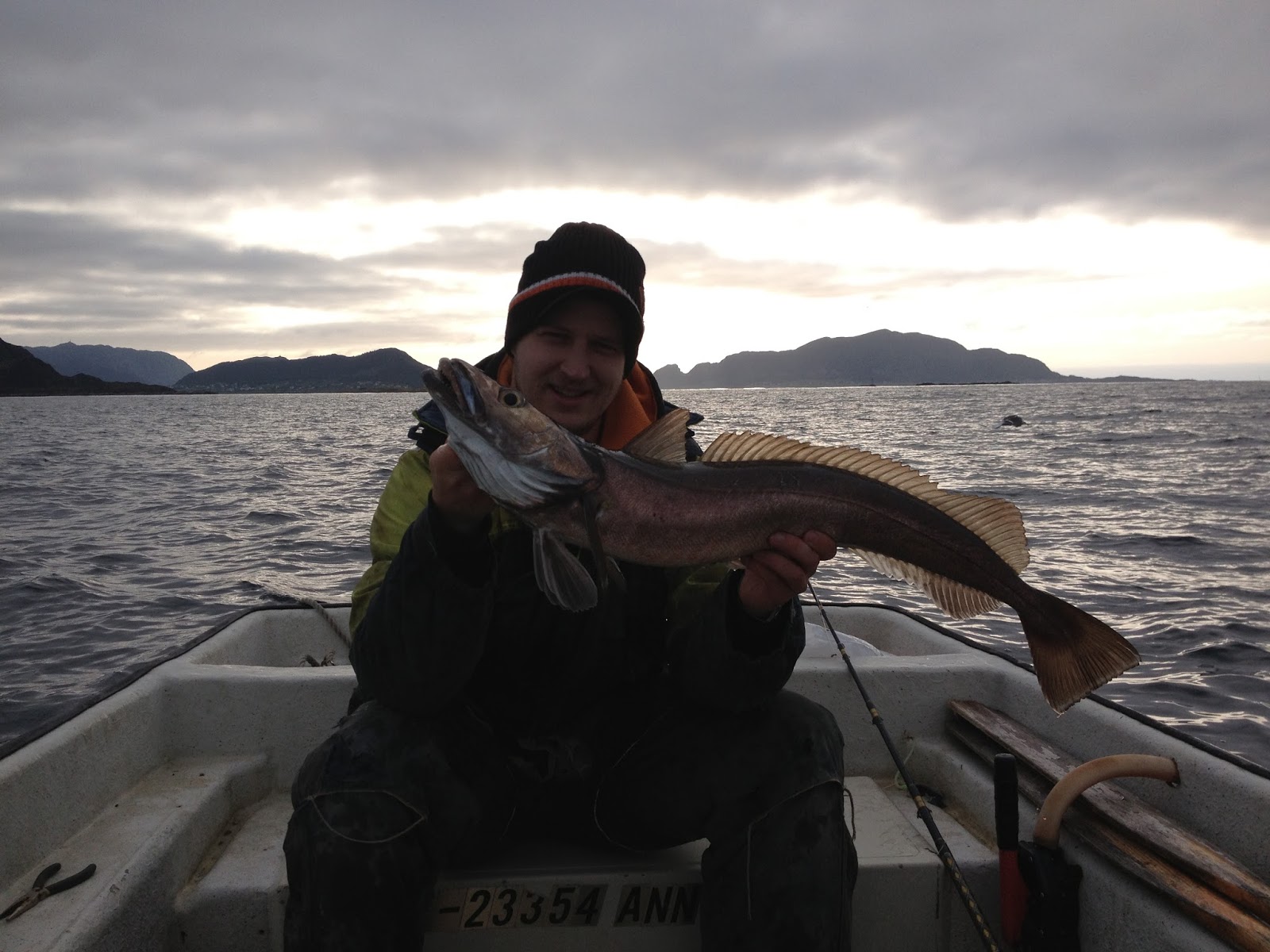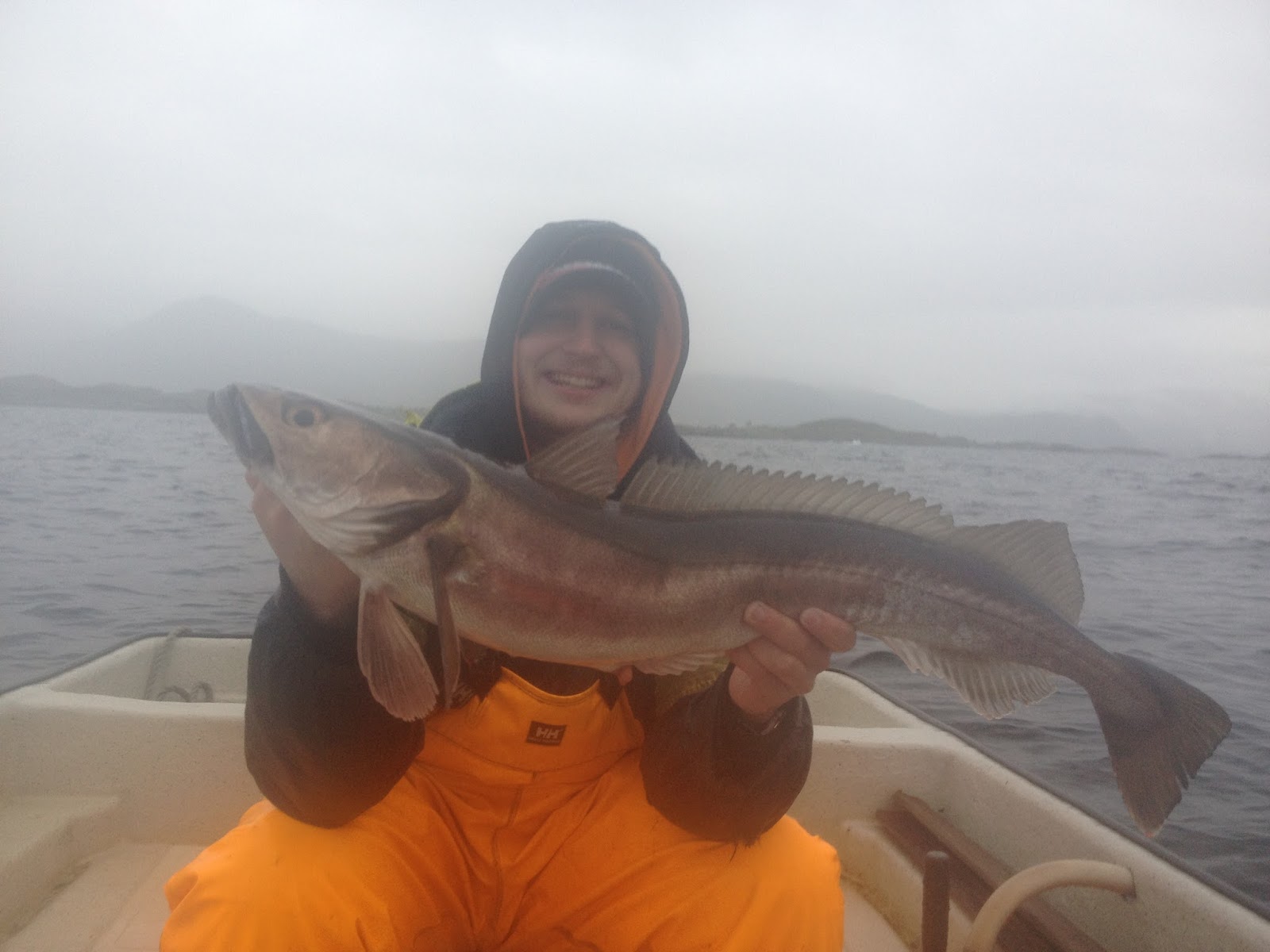 Ny pers på fyrste fisk lovar bra, og smilet er på plass! Ikkje lenge etter har eg fått to til på 3-4kg, samt ein torsk, og etter litt om og men er det liv hos Kalland også.