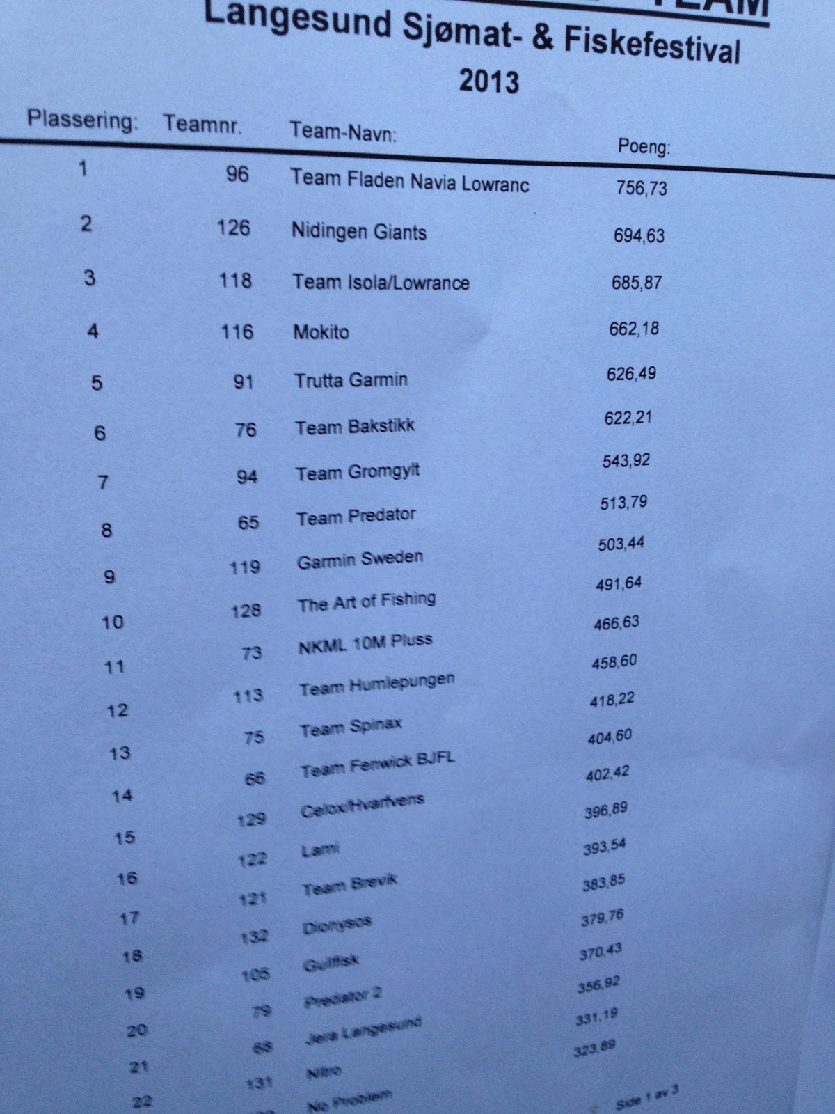 Isola-gjenget kom på 3.plass, bak Team Navia. Svenskene måtte for en gangs skyld se seg slått av nordmenn. For vant gjorde gutta i Trutta Garmin, med Jera-skippere Thore og Stig, samt maskot og moroklump Åsmund. Thores lettelsessukk/avmålte jubelrop etter at andreplassen var annonsert viste at det lå mye bak. På vegne av NKML, gratulerer!
