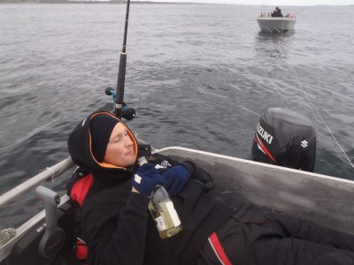 Eneste action denne dagen var da vi i Xplorer10+ var veldig artige, og kutta lina som holdt Xplorer7 fast til oss+anker. Ved et uhell i samme slengen, hekta Bjørn sitt takkel fast i Sigve sitt takkel, og benyttet muligheten til å gi Sigve en “heftig fight”. Vi fikk melding fra de andre gutta over walkie talkie (som tydeligvis itje skjønte ein dritt), at Sigve hadde kjempefisk som hadde tatt midt i vannlaget. SMS rigga raskt om til shad, vi sto å lo…