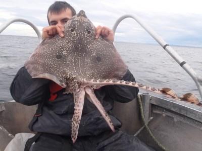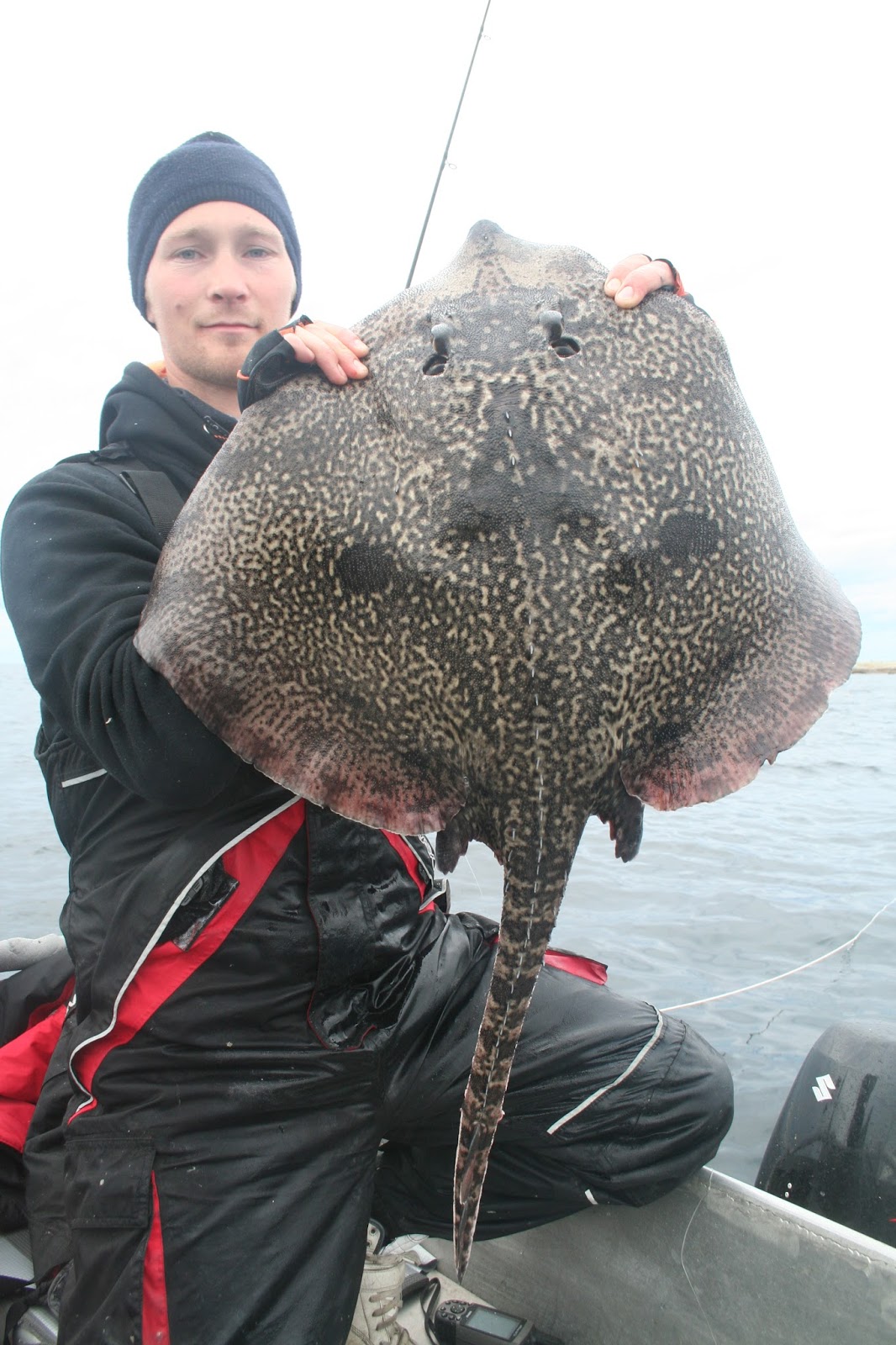 Dagen fortsetter videre i samme kavalkade den startet for oss to. Irvin derimot dro inn 4-5 lysing fra 5kg til snaue 7kg. Ble dessverre ingen spekimen eller pers på Irvo. Bilder ble det derfor heller ikke noe av. Lysingfisket dør også ut, og etter dialog med Xplorer7, bestemmer vi oss for å ta en liten avslutningsrunde inne i piggskateland. Etter en drøy times fiske har 4 skater kommet opp i båten, 2 på Calle og 2 på Irv. Dagens fisk og turens for Irvos del satt imidligertid etter kun få minutter. Kenzaki 6-12lb får virkelig kjørt seg, og Irvin melder om at dette høyst sannsynlig må være kveite. Hissige utras gang på gang og full baluba. Etter en solid fight stiger det opp noe helt annet enn kveite. “Nei faen, det ER jo piggskate!”