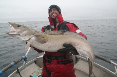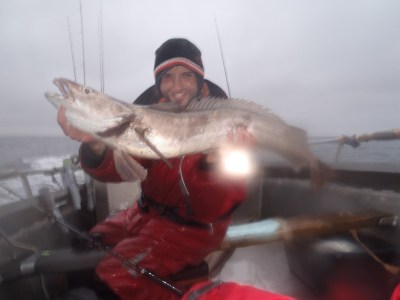 Lysingfisket starter med ett smell! Full bøy på staget hos Bjørn på ca 120 meters dyp, og utras er på gang. Vi “skjønner” at det må være kveite, da dette ikke er uvanlig i området. Drar inn noen meter og friske utras om og om igjen. Etter hvert begynner den å komme oppover, men konstant fighting gjør det til en lang tur opp. Vi skjønner etterhvert at det ikke kan være kveite, og går over mot arten vi hadde glemt, lange! 10-15m under båten begynner den “endelig” å flyte oppover og snøret får den klassiske vannrette vinkelen ut i fra båten. I vannflaten 15 m bortenfor båten bryter det en diiger lange. Den ser ut som godt 30+! Lang og grov. Calle får satt kroken og Bjørn innser at han endelig har nådd 20+ på lange!