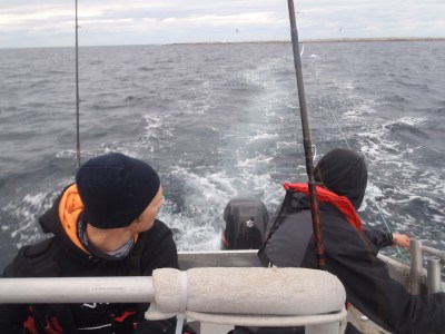 I store dønninger bar turen utover det åpne havet. Skjellbrosme og vassild var første del av planen. Vi hadde allikevel glemt en ting, makrellfiasko. Uansett hvor vi skulle slippe ned våre vassild-hekler, slo makrellen til. Alt fra 3 til 100 meters dyp. Veldig artig. Inni mellom nådde vi bunn, og fikk dratt opp litt av hvert. Vassilda så vi derimot ingenting til. Foruten smålubb og langer dukka det opp noen brukbare fisk: