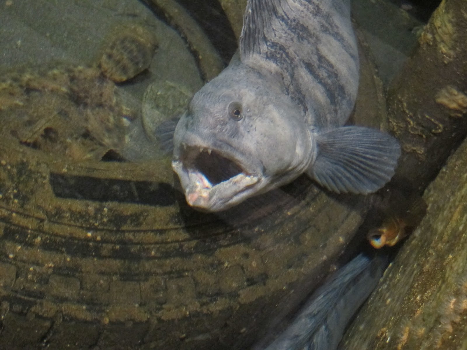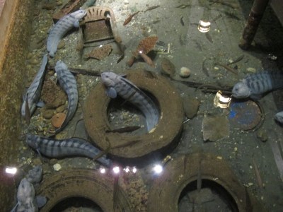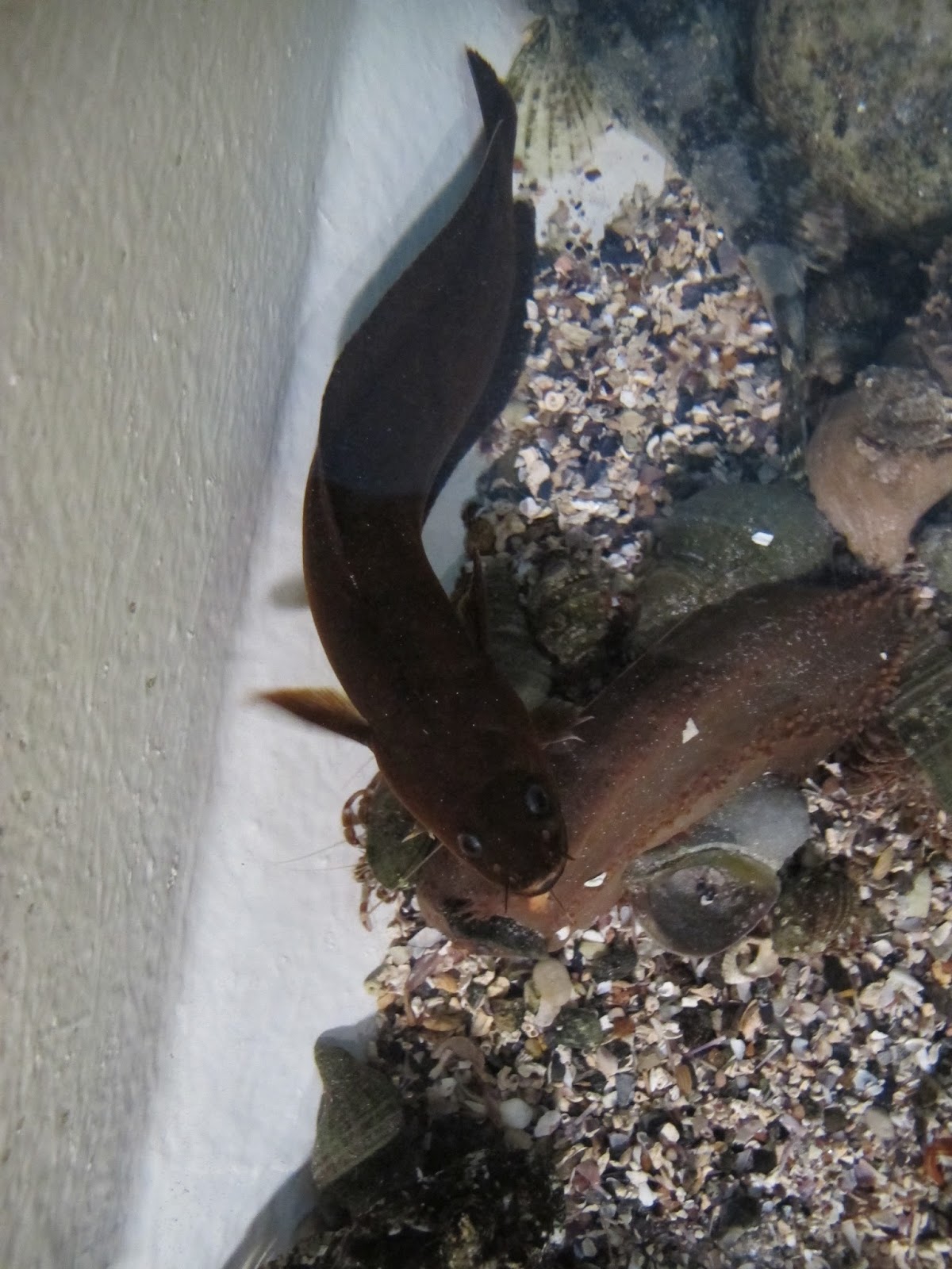 Tok dessverre ikke video da steinbitene ble foret av en kjemiker med sommerjobb. Jeg fikk ikke lov å fore steinbitene. Etter litt mas lot hun meg likevel fore fiskene på barnas aktivitetsrom med rekebiter. 😀