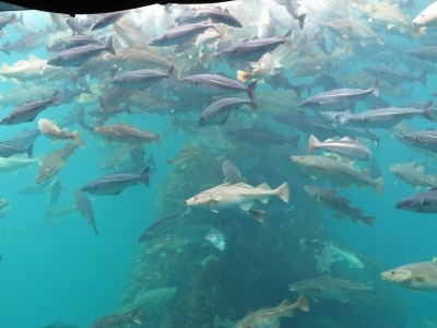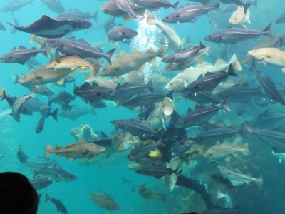 Tror guiden sa akvariet var 27 x 18 x 7 meter og inneholdt ca 800 fisk. Største torsk og største sei begge rundt 25 kg. Største kveite estimert til ca 70 kg.