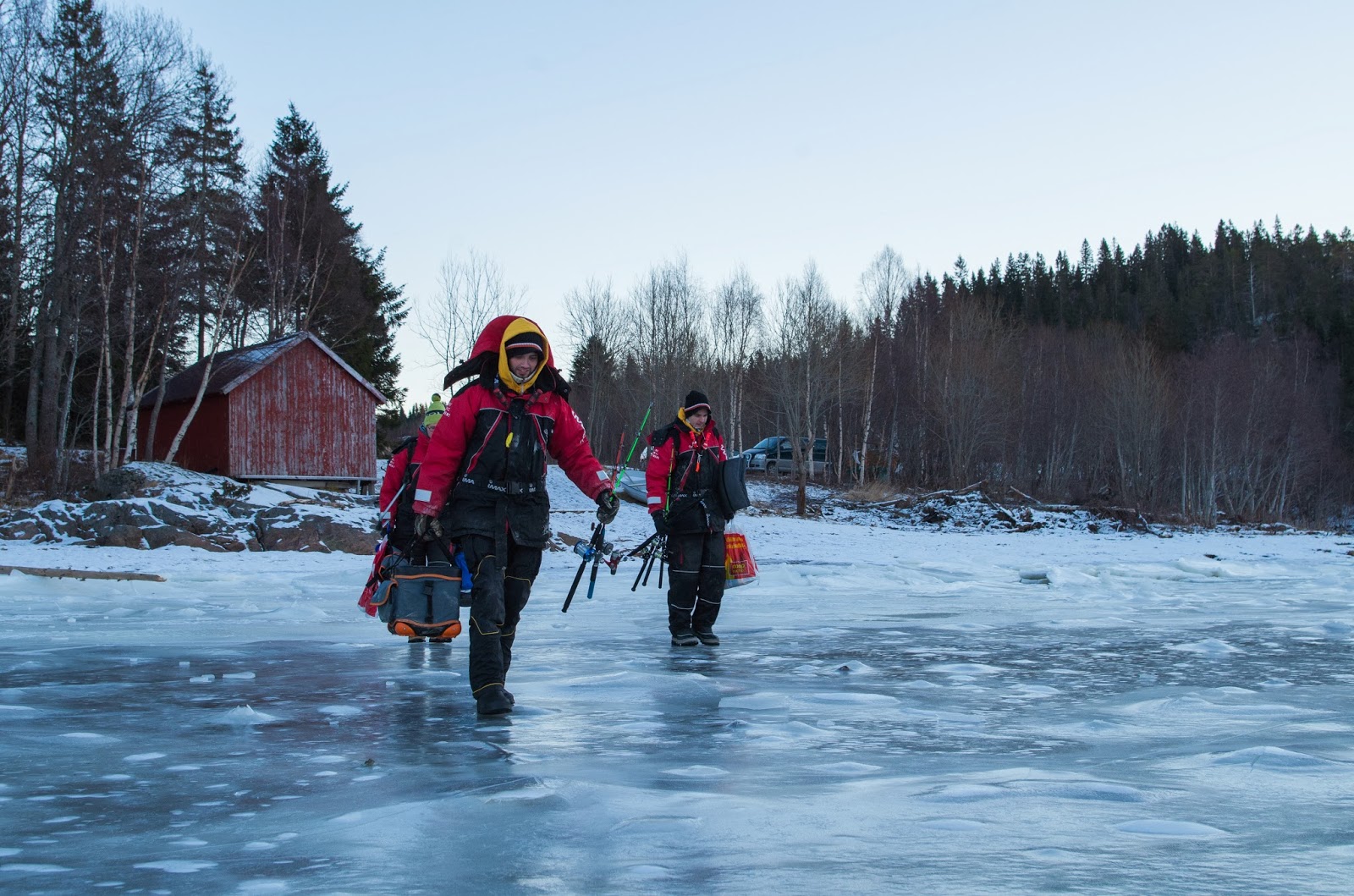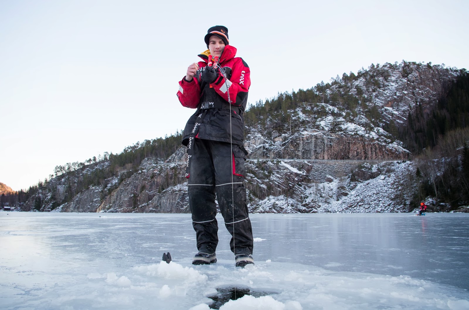 En flytedress er derfor en meget god investering. Man holder seg lun, varm og tørr, og man flyter om man mot formodning skulle gå gjennom. Og for all del, brodder! Isen blir reneste skøytebanen når det er såpass kaldt og tørt som det er nå.