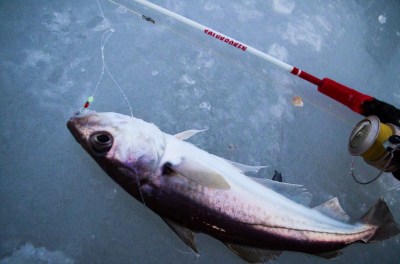 Hvitting tatt på lett utstyr og agnet hekle. (Foto: Vegar Seljestokken)