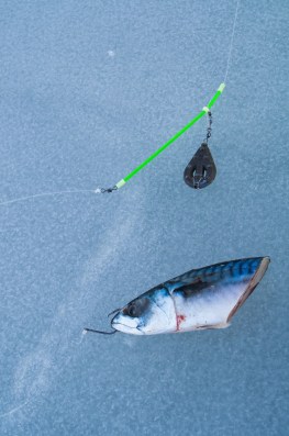 Det finnes nok ingen tommelfingerregel, er det en fisk funker den som agn! Det mest brukte trikset er å kutte en passende agnfisk i to og feste kroken inn underkjeven og ut overkjeven, gjerne enda tynnere enn på bildet over. Agnet bør festes så tynt som mulig for å få fritt krokgap, med krokspissen ut rett innenfor kjevebeinet. Filétstykker og halestykker funker fint det og. Med hel agnfisk kan det være lurt å kutte av halen for å unngå snøretvinn.
