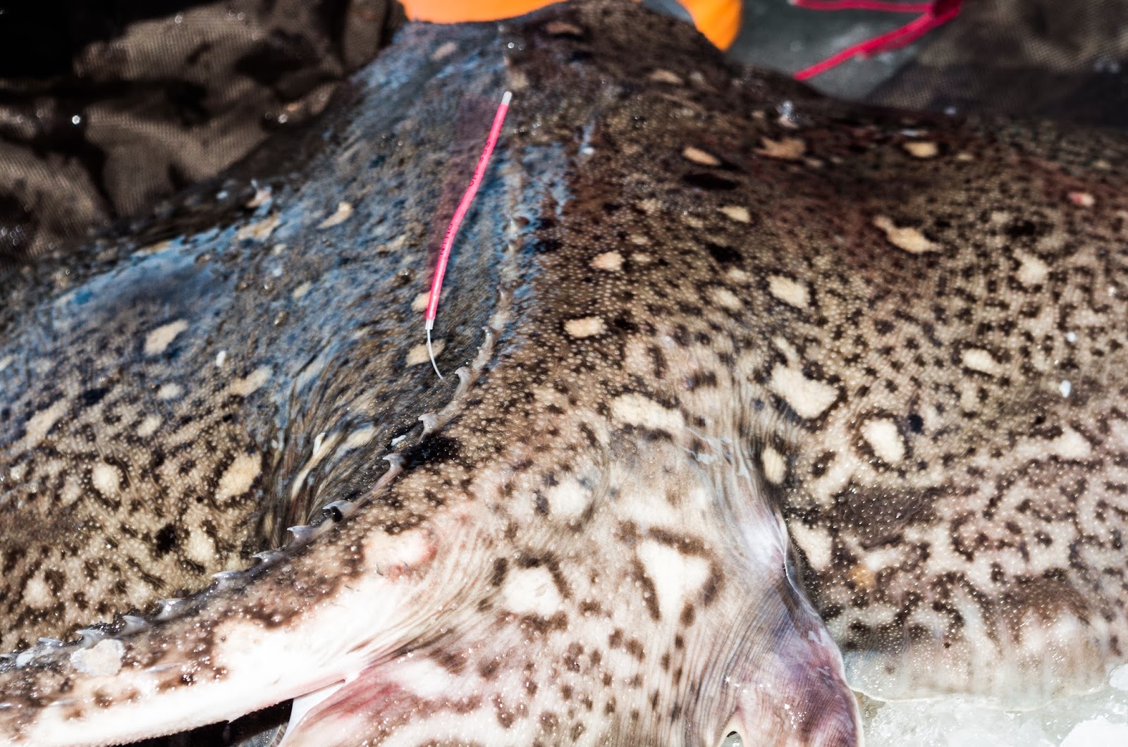 Det var ikke sykt mye liv denne dagen, men en god del piggskater opp til 4 kg så dagens lys. Fisk på opp mot 5 kg er ikke direkte uvanlig, og norgesrekorden på hele 10,75 kg er tatt her inne av ingen ringere enn Vilhelm Skilhagen. Sistnevnte var på plass med merkeutstyr denne dagen. Det drives nemlig et aldri så lite merkingsprosjekt på skatene i Løgnin i regi av Arve Lynghammar ved universitetet i Tromsø. Skatene veies, måles  og merkes før de slippes ut igjen. Hovedpoenget er at fiskene skal måles og veies på nytt ved gjenfangst. Disse dataene viser ikke bare overlevelse ved catch & release, men de brukes også til å vise hvor fort, eller rettere sagt hvor sakte, disse dyrene vokser.