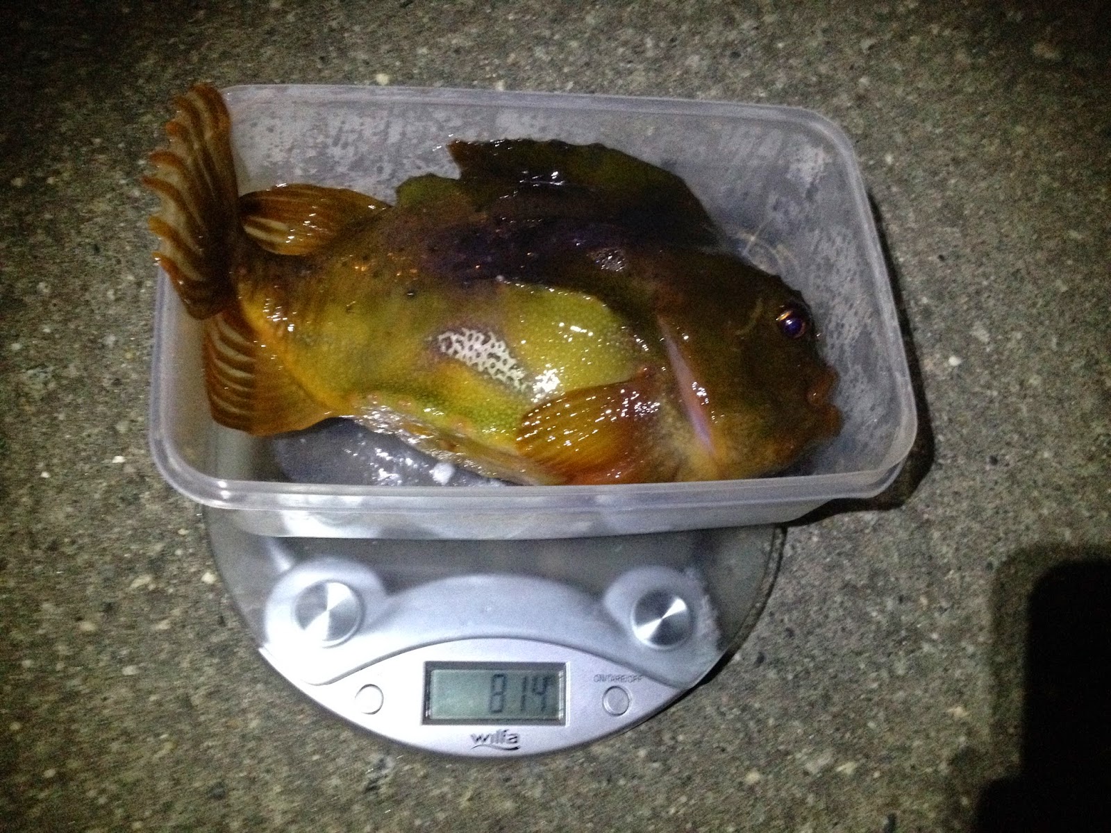 | Gråsteinbit er vanlig i forbindelse med bryggelanlegg. Denne veide knappe kiloen. |