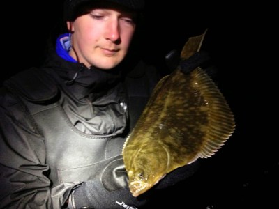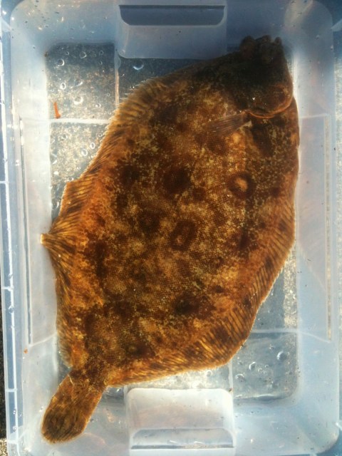 Adrian opna ballet, med ei fin lomre på 510 gram. Dette ga meg noko tryggheit på at eg kom til å slå persen frå gårsdagen, og dermed få ein ny sjanse til å avbilde arten. Eg skulle få rett, og inn i mellom nokre mindre sandflyndrer dukka det opp ei lomre på godt over den dagsgamle persen.