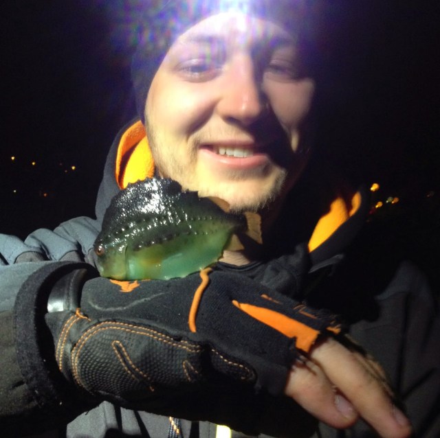 Til slutt tok vi turen tilbake til den raudflekka-plassen vi prøvde tidlegare, men dei var like vrange. Etterkvart som natta seig på, og den siste kutlingen stakk til skogs, ga vi opp og drog heim. Ingen raudflekka kutling i denne omgang, men to nye artar og politibesøk på ei og same natt er ikkje kvardagskost for meg, så eg la meg til å sove med eit smil om munnen.