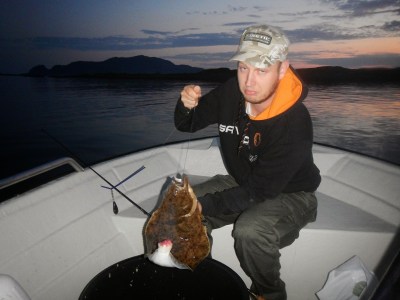 | Når eg endeleg får mi fyrste kveite på 10 år, er den tygd på? (Foto: Aleksander Kvalsund Kalland) |