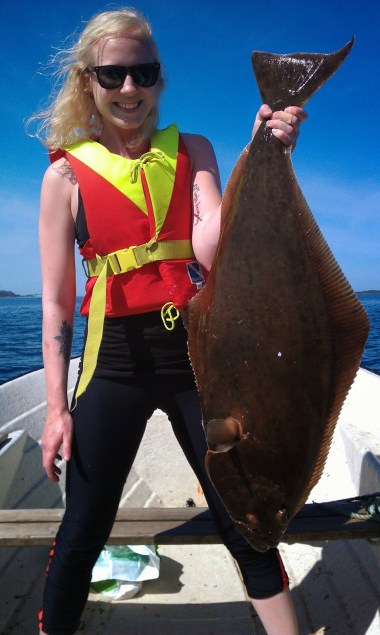 Ein skulle tru eg vart sjukeleg sjalu, men eg vart faktisk berre glad! Eller, eg var jo sjølvsagt 10% sjalu, men 90% glad på andre sine vegne, det er bra for ein sunnmøring. At dette er den fyrste fisken ho får på 12 år, og det etter 5 minutts fiske er jo berre rått!