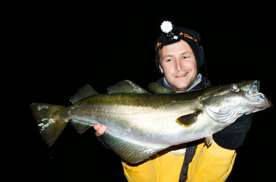 Nu när jag ändå är igång med att vara uppe allt för sent om nätterna så tänker jag att det inte skadar att pröva efter en annan nattaktiv pikk. Har prövat i våras och i somras utan så mycket som en antydning till att dom är på plats. Men men, kanske är det hösten som är tingen i år. Letar fram sandeel, stang, rulle och ringer till Veg. Väl på plats får jag en liten tass ganska fort och nu stiger förväntningarna. En helt ok serie med fisk får ett besök i håven och kvällen blev långt bättre än jag förväntat mig!