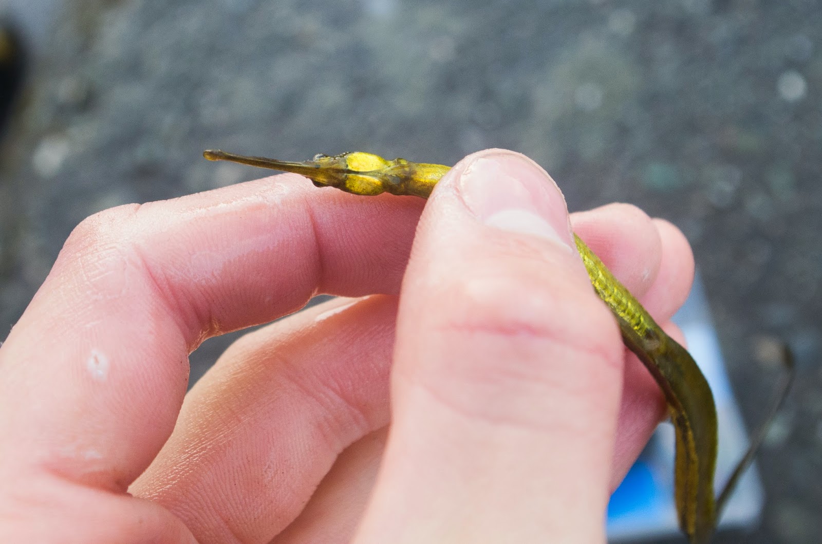 Dette var da vitterlig ingen tangstikling, men en nålefisk av noe slag. Alt for liten trut til #28, så jeg ringte Sindre med lovnad om muligheter for ny art. Sindre stakk turen innom for å dyppe tanagokroken sin , og med hans egne ord forløp det nogen lunde slik: