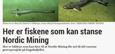 Disse undersøkelsene er gjort i forbindelse med utredning til Nordic Minings planlagt gruvevirksomhet i Engebøfjellet i Naustdal kommune i Sogn og  Fjordane. Her er det store forekomster av mineralet rutil, som det utvinnes titan av. Deponiet av overskuddsmassene er planlagt i Førdefjorden, som er en drøyt 300 meters dyp fjord med bratt sider og flat fjordbunn. Gruveavfallet vil utgjøre hele 4-5 millioner tonn – hvert år de neste 50+ årene. Avfallet skal deponeres ute på mudderbunnen, noe som vil føre til totalt endra forutsetninger for mangfoldet her. Den rike bløtbunnsfaunen vil jo blir begravet levende. Havforskningsinstituttet har uttalt seg skeptisk til utbyggers konsekvensutredning, blant annet fordi det er gjort feil artsbestemmelse på en del fiskearter. “Langene” som vises på ROV-opptaket, er slettes ikke langer, men blålanger (se bilde under). Notatet fra HI kan leses her: