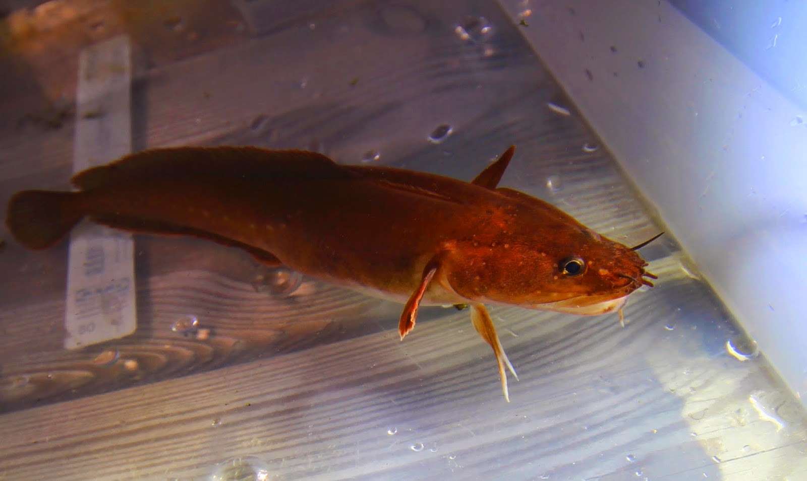 | Art nr. 117. Nordlig tangbrosme. Tatt på kikkfiske i en steinur. |