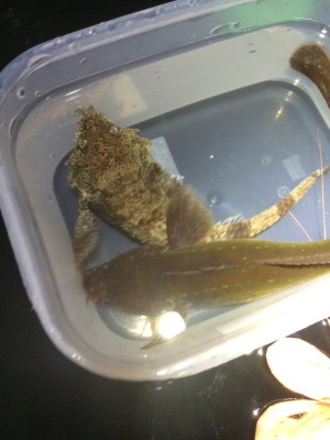 Neste helg kom Trøndelags neste rikskjendis Vegard Seljestokken nedover til mine trakter for en konfirmasjon, men hadde selvsagt tid til å fiske. Han var ute etter tunge, men vi lette forgjeves. Vi så derimot femtrådet tangbrosme, panserulke og slettvar, men ingen som var dumme nok til å bite. Jeg hadde ikke sett noen av artene gjennom vindu og manglet de to siste, mens Vegard hadde panser fra før. Dette la selvfølgelig en demper på stemninga, men Vegard reddet turen men å værtfall perse på piggvar.