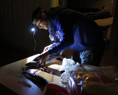 Pelamidesashismi tilberedes av eks-yrkesfisker Adam på passende underlag: