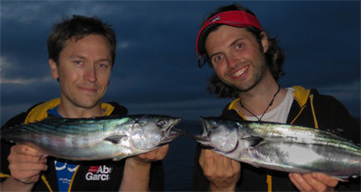 To meget letta artsfiskere med henholdsvis #118 og #119. Stripet pelamide er imidlertid altfor morsom fisk til å bare bli et tall i rekka. Vi håper inderlig de kommer tilbake neste år og at vi får fisket mye mer av denne arten! NB! Legg merke til at jeg har Abbu-logoen synlig mens Florø-Larsen slurver med logoflashinga!