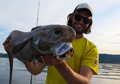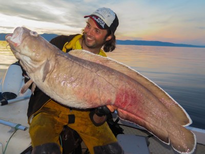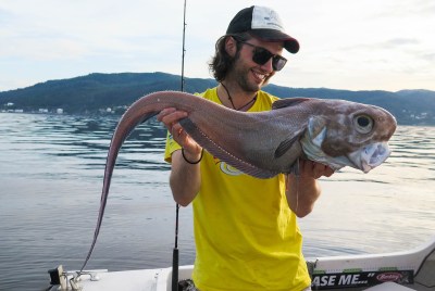 Brosme på ca. 8kg. Rart hvordan noen individer blir bobleplast+, mens andre ser top nåtsj ut når de kommer opp fra drøye 400 meters dyp. Ellers et meget godt eksempel på et bra selvutløserbilde..