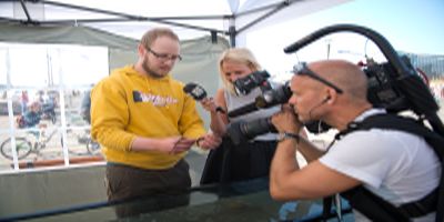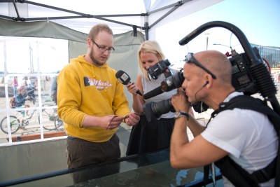 Bernt Nor tett fulgt av et kamera og en reporter kommer bort til oss og vil ha en fra NKML til å vise frem og forklare litt om hva vi har i akvariene om 10 minutter. Vi er langt i fra forberedt, men vet det hadde blitt oppvaskmøte i NKML hvis vi sa nei. Han spør hvem av oss som tar seg best ut på kamera og jeg svarer spøkefullt “Ingen av oss”. Sindre melder seg frivillig og med en rolig stemme og utdypende formidling blir innslaget en suksess. Resultatet kan ses her.