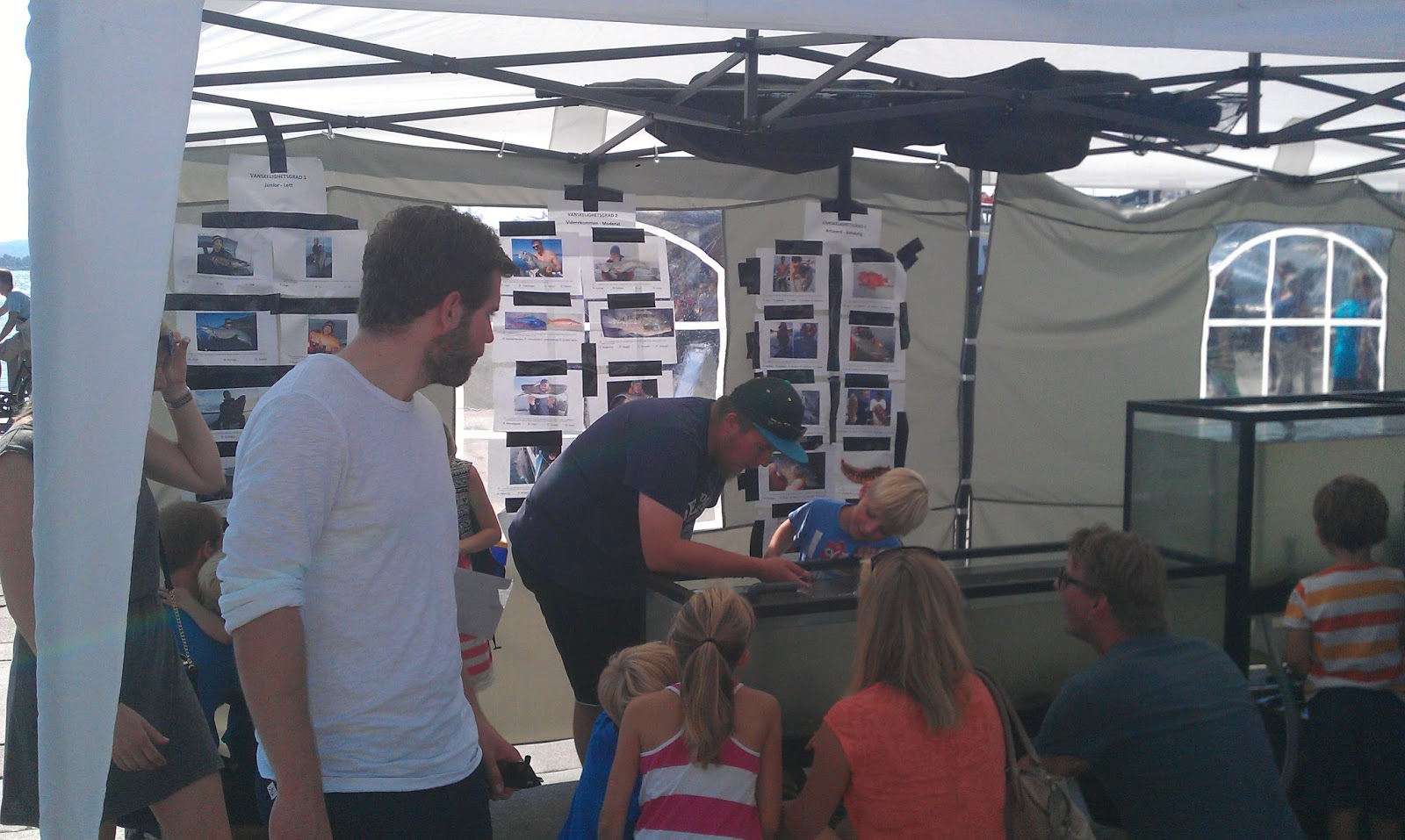 Siden rensepumpene ikke fikk tatt det finkornete mudderet fant vi fort ut at vi måtte vise fram fiskene for hånd. Selv om dette medførte mer stress på fiskene ble det satt i gang et rotasjonssystem som gjorde at all fisken som holdt seg unna inntaket til kjølepumpa overlevde. Og på tross av selvpåført handikap i form av nedprioritering av søvn var det veldig givende og artig å kunne vise frem arter fanget i Oslofjorden til et forbløffet publikum. Nålefiskene ble en publikumsfavoritt, til og med barna glemte at det var krabber, eremittkreps, sjøstjerner og strandreker oppi akvariet. Tungene ble møtt med mange spørsmål fra de voksne og de fargerike ulkene fikk flere til å gispe. Ålekvabbene og tangsprellen var det ingen som fant, dessuten helt umulige å holde dersom de først dukket opp. Gyltene hadde funnet ly i en tangkvase og mange gikk rett forbi uten å se nøye nok etter, desto artigere å peke dem ut, til forbauselse hos noen. Fløyfisken lå på utstilling i et hjørne så vi slapp å ofre fingre for å vise den fram og slettvarene slo godt an, når vi først klarte å se dem. Artsquizen var også populær og det ble et veldannet køsystem for at alle skulle få prøve seg. Bortsett fra et par velkjente fjes i artsfiskemiljøet som tok quizen for moro skyld, var det ingen som fikk full pott.