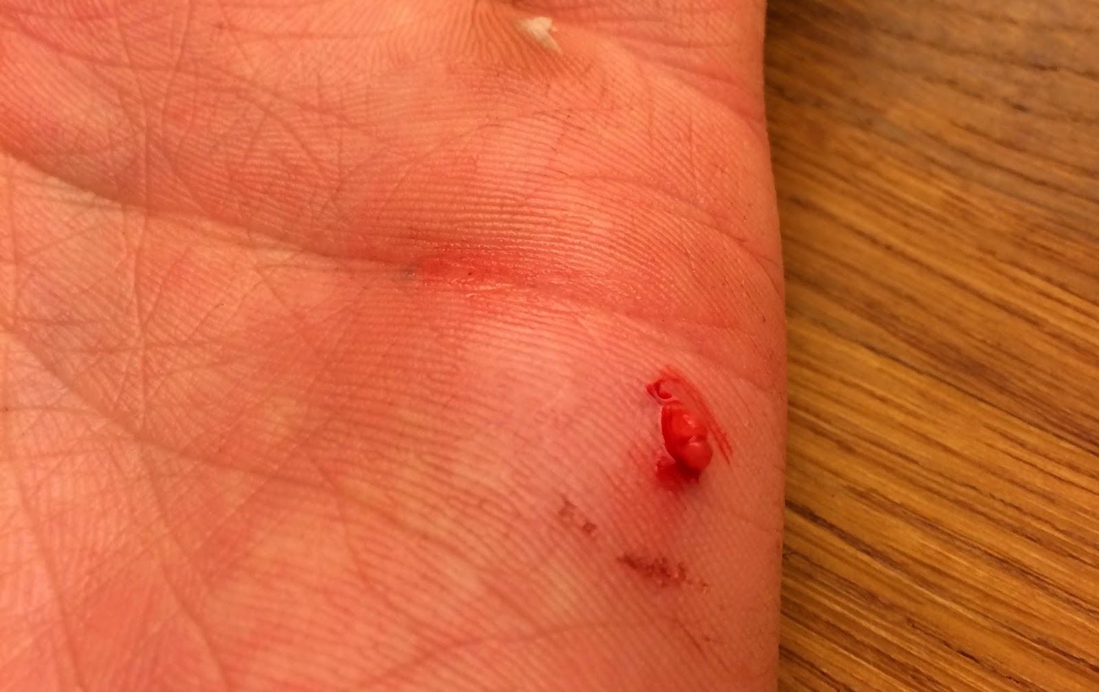 Noe av grunnen til det var at det var pigghå her også. Og sånt tar tid. Det tar også litt tid å komme seg etter å ha blitt spidda av pigghåpigger, TO ganger etter hverandre. Jeg har klart å unngå disse siden 2007 da jeg først fikk arten, men ikke idag. Først i hånda, så på utsiden av kneet. Altså, ikke sånne lette stikk som blir litt rødt på huden, men typ kjøre halve piggen inn så det fulgte med kjøtt ut igjen. Totalt amatør med andre ord. Vanligvis setter man foten på halen mens man avkroker pigghå, men med trang plass på dekk og mye sjø var det en vrien øvelse idag. Det blir litt armer og bein. Som hell var hadde jeg for første gang i mitt fiskerliv med meg plaster, hendig plassert i brystlomma på jakka. Selv om det pumpa litt ekstra i hånd og kne, fikk jeg i det minste kontroll på blødningen.
