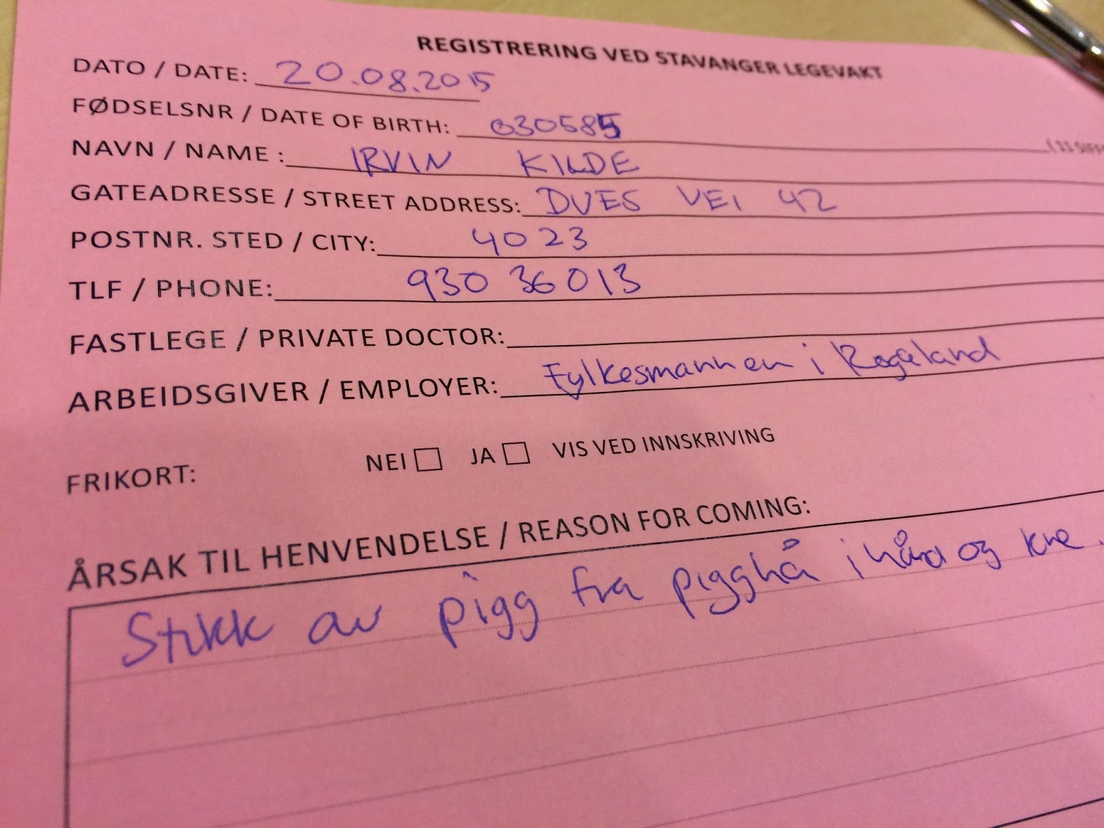 Oppladningen til andre fiskedag ble ikke helt optimal. Da jeg kom hjem i 22-tiden og fikk av meg plaster ble jeg raskt beordra på legevakta av fruen. Var litt i tvil selv, men tenkte det var lurt å få det sjekka i hvert fall. Det var ikke mye legen kunne gjøre, men han fikk kutta bort litt kjøtt for å få såret til å lukke seg. Også ble jeg foreskrevet antibiotika, uten at jeg tok det så veldig seriøst. De hadde ikke vært borti lignende før så de måtte vel ha sitt på det tørre. Foruten et saftig blåmerke var hånda helt fin dagen etter, og med litt teip og hanske ville det gå greit å fiske. Kneet derimot var litt halvråtten. Det funka å stå oppreist men å bøye kneet var vondt. Det fikk bare stå til.
