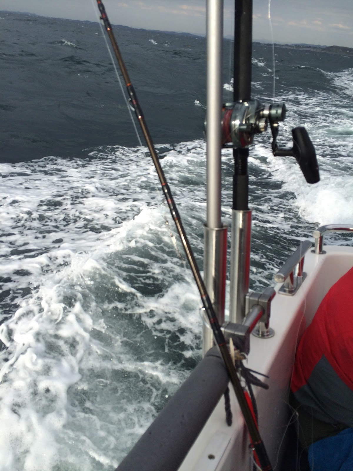 Den tredje dagen var det mindre vind enn tidligere, bare 10 m/s var meldingene. Det stemte bra, og det er rart hvor pinglete 10 m/s føles etter 2 dager med 15+. Båten i dag var legendariske Terje Ølberg, en mann som tar plassene på landpeiling, og alltid ligger spot on. Hågrunnen var igjen første stopp. Og om jeg trodde vi fant fisk igår, så tar jeg det tilbake. Idag fant vi fisken. Makrellen tok maks 5 minutter idag, hadde virkelig fått inn teknikken. Men det er blir stressete, for de som tar det litt mer med ro må det hele se litt komisk ut. Det var dette konkurranseinstinktet. Deretter var jeg igjen raskt nede med sypikehekla, og 600 gram bly for å prøve å parkere makrellen. Vi ga det hele en times tid, og på den tiden hadde jeg seks lusuerklipp, tre sypikeklipp og ut av det blå kom det også opp to sei.