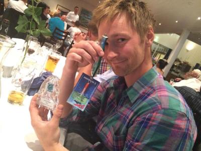 Sol var også kjennetegnet under banketten og premieutdelinga seinere på lørdags kvelden. Etter en magisk sjømataften var det tid for premieutdeling på Hummeren Hotell. De som fikk premier var dagsvinnere i hver klasse, altså herrer, damer, senior og junior. For hele festivalen ble det premie på de ti beste herrene, og de tre beste damene, seniorene og juniorene. Dessuten var fikk de tre beste firemannslagene premie. Da tallenes tale ble lagt frem og general Roar Sandvoll ramsa opp resultatene, hadde lørdagens fiske holdt til dagsseier for min del. Det var faktisk ganske stort og gå frem og motta statuett og diverse fiskeutstyr, til applaus fra salen. Det var stort å se alle som var glade på mine vegne, og som synes det var gøy at ferskingen gjorde det godt.