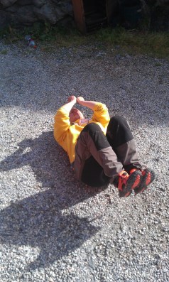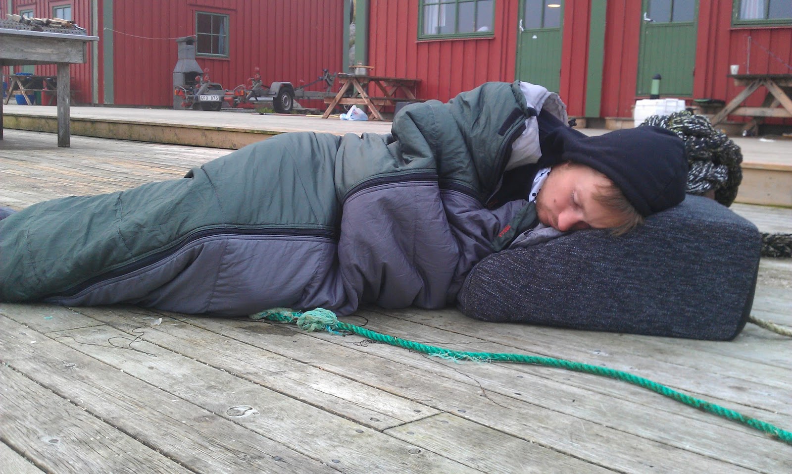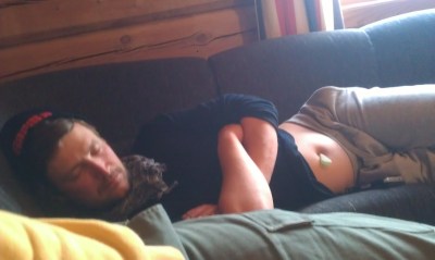 Innenfor hytten sov Adam, ikke helt uventet, i sofaen. Noe han forsåvidt gjorde alle kveldene. I et desperat forsøk på å enten komme inn, eller å slippe ut, av svenskens vom fant vi et stakkars strandet sukkertøy i navlen hans. For en skjebne.