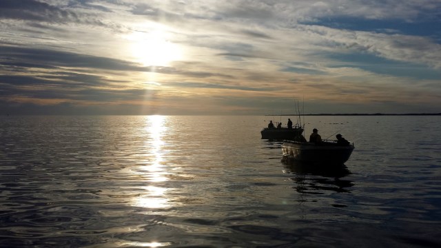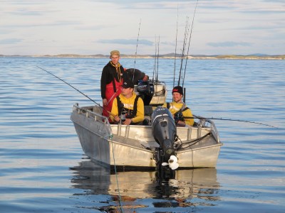 Når vi kommer frem ligger allerede Carl Oscar og Tofte oppankret med Isolas anker (takk for lånet!). Vi hekter oss på noen og tjue meter bak og slipper ned. Jeg tror ikke vi trenger å si så mye annet enn at jeg håper spisskatene liker småbrosmer, for de står tett nedi der… Etterhvert kommer også Sverre, Bjørn og JOFL. Og der ligger vi altså. Tre båter fulle av idioter som pumper opp småbrosmer fra flere hundre meter. Lite jazz der altså. Når solen går ned kjører de fleste av oss igjen, mens brødrene Larsen som vanlig pusher litt lenger. Nå gikk det heldigvis bra, og de fikk start på motoren kl 00:00 slik at ikke SMS og Tofte trengte å kjøre ut til de og drive redningsaksjon frem til kl 03:00, så det var vi alle glade for!
