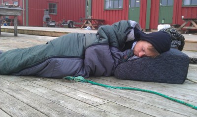 På lørdagen våkner vi tidlig og ved godt mot alle mann. Irvin, som har et hemmelig ønske om å bli den neste Lars Monsen (med unntak av borrelia) overnattet i villmarken, med kun det aller mest nødvendige som tilbehør.