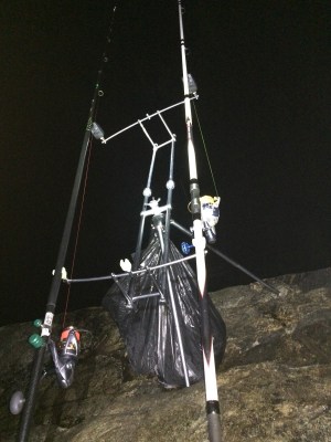 Kom frem til destinasjonen i 20-tiden for å ha litt lys og rigge på, samtidig som vi ville bli litt kjent med plassen. Været var helt etter boka, 1 % månelys (Pitch black), helt vindstille og ca. 10 grader i vannet. Vi skulle både fiske på synkende og stigende vann. Akkurat nå var vannet i fløende retning og skulle fortsette med det frem til like over midnatt.
